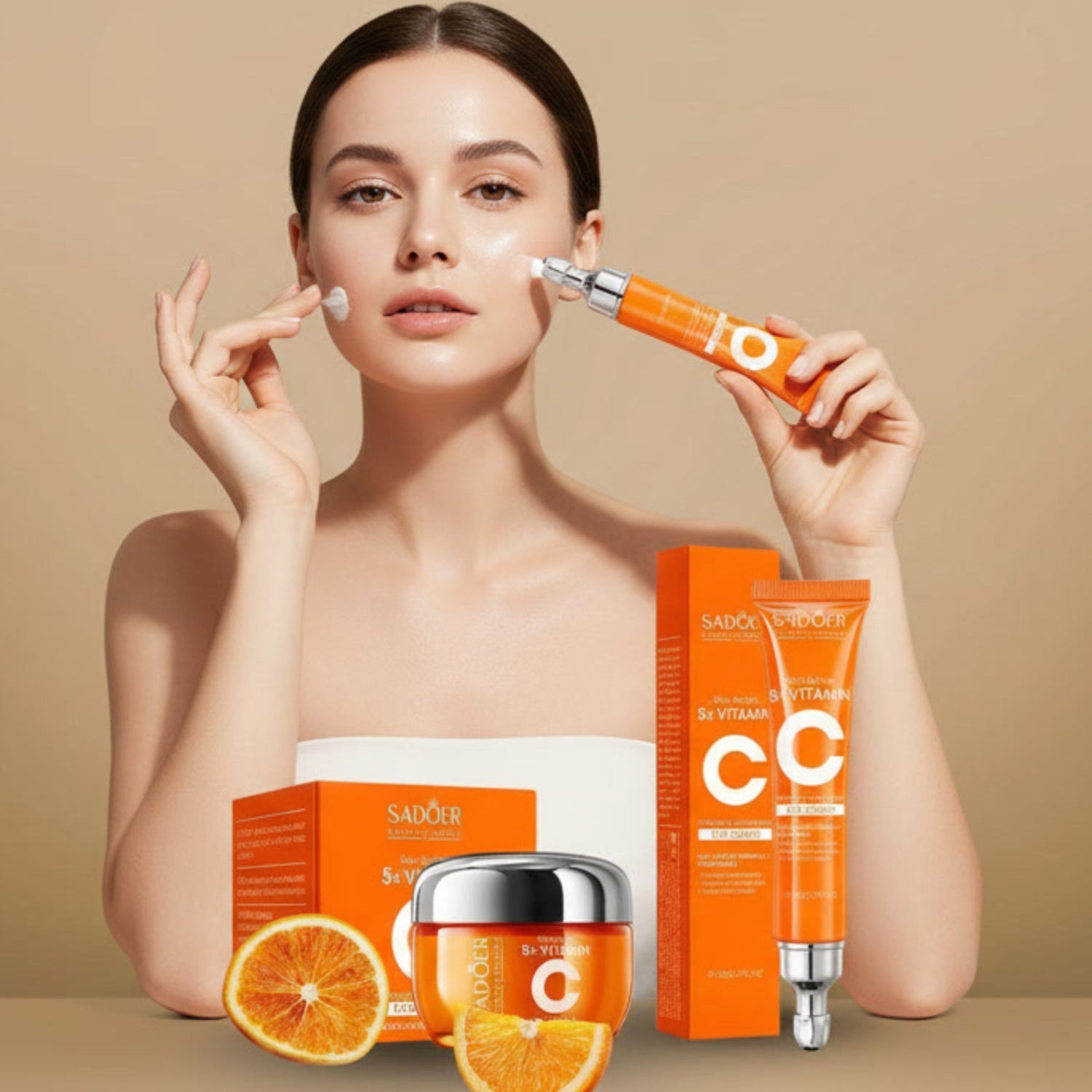 SADOER Vitamin C Face Cream is a daily facial skincare product formulated to moisturize, brighten, and improve the overall appearance of the skin. Enriched with Vitamin C, it helps revive dull skin, enhance natural radiance, and support a smoother, healthier-looking complexion.
